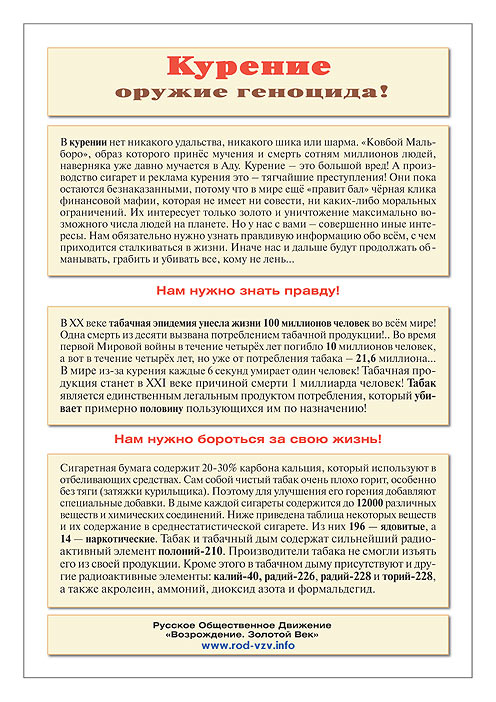 общества, освещающие проблему шире и глубже, чем соответствующая листовка. Листовка предназначена в основном