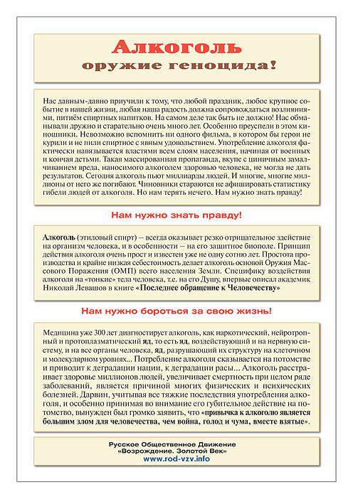 Алкоголь – оружие геноцида!